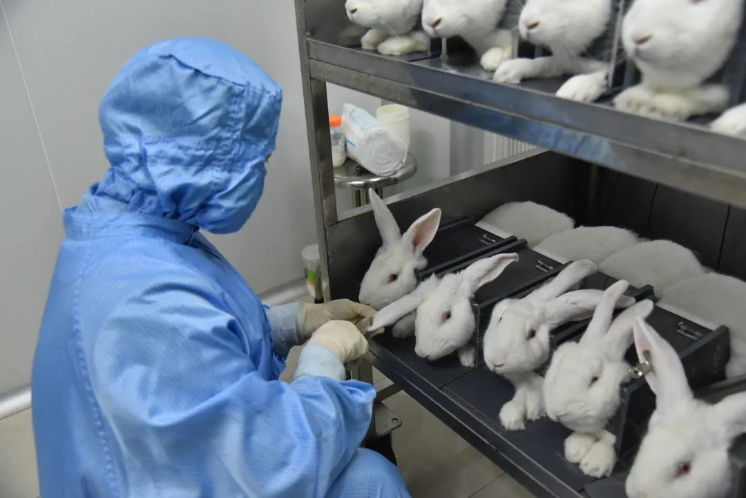 “小兔子乖乖快出來”每天早上9點,馮偉玲都和其他同事一起,一邊在兔子耳邊喃喃細語,一邊輕柔地將生長室里的3只小白兔抓取出來,移到另外的工作室。