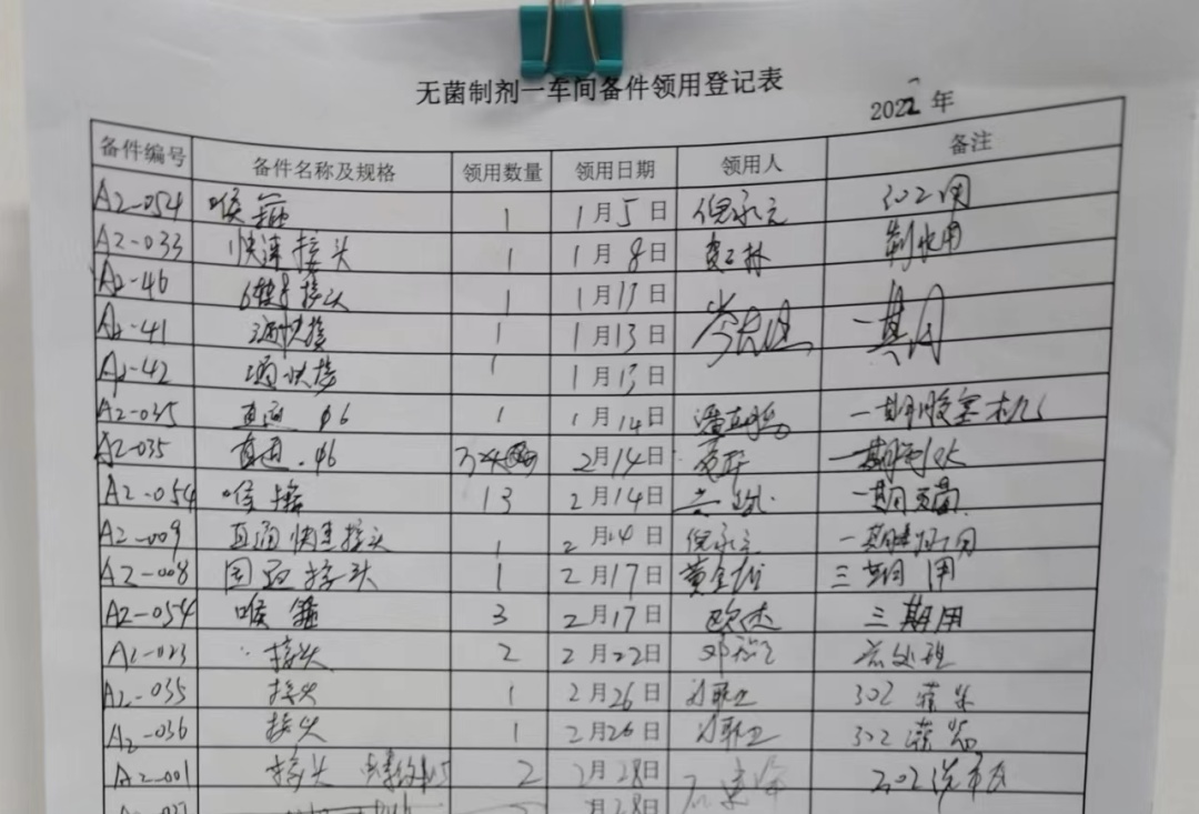 備件室7S管理已初步成形,但還有很大的提升空間。在現(xiàn)有改善成果的基礎(chǔ)上,團(tuán)隊(duì)成員致力于備件室管理規(guī)范化、信息化打造。原來(lái)備件物品的借用流程采用紙質(zhì)登記,該種方式存在記錄流程繁瑣、登記時(shí)間長(zhǎng)、信息不明確等問題。針對(duì)該問題,備件室對(duì)A貨架試行草料小程序登記出入庫(kù)流程,提升領(lǐng)取備件的速度。