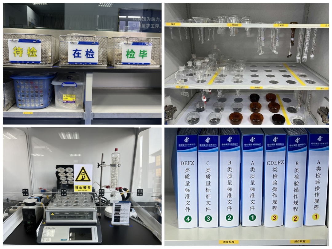 質(zhì)量是企業(yè)的根本。在質(zhì)量控制工作中,每個(gè)細(xì)微環(huán)節(jié)都需要認(rèn)真細(xì)致、規(guī)范操作,才能保證結(jié)果精準(zhǔn)無誤。質(zhì)量控制部通過改善實(shí)驗(yàn)室環(huán)境,保證檢驗(yàn)操作正確開展。樣品按待檢、在檢、檢畢分顏色擺放,操作不易弄混。對文件、物品進(jìn)行分區(qū)定置,使用定位膠帶或分隔板進(jìn)行分隔,便于快速、準(zhǔn)確查找。在檢驗(yàn)儀器旁定置圖文并茂的操作規(guī)程,便于閱讀,提高了檢驗(yàn)人員操作的準(zhǔn)確率。這一系列舉措使得檢驗(yàn)環(huán)境大大改善,提高了檢驗(yàn)人員的效率與準(zhǔn)確率。