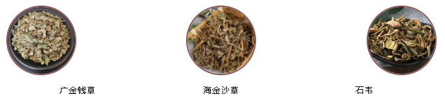 方中重用廣金錢草、海金沙草、石韋利濕通淋,為方中君藥。
