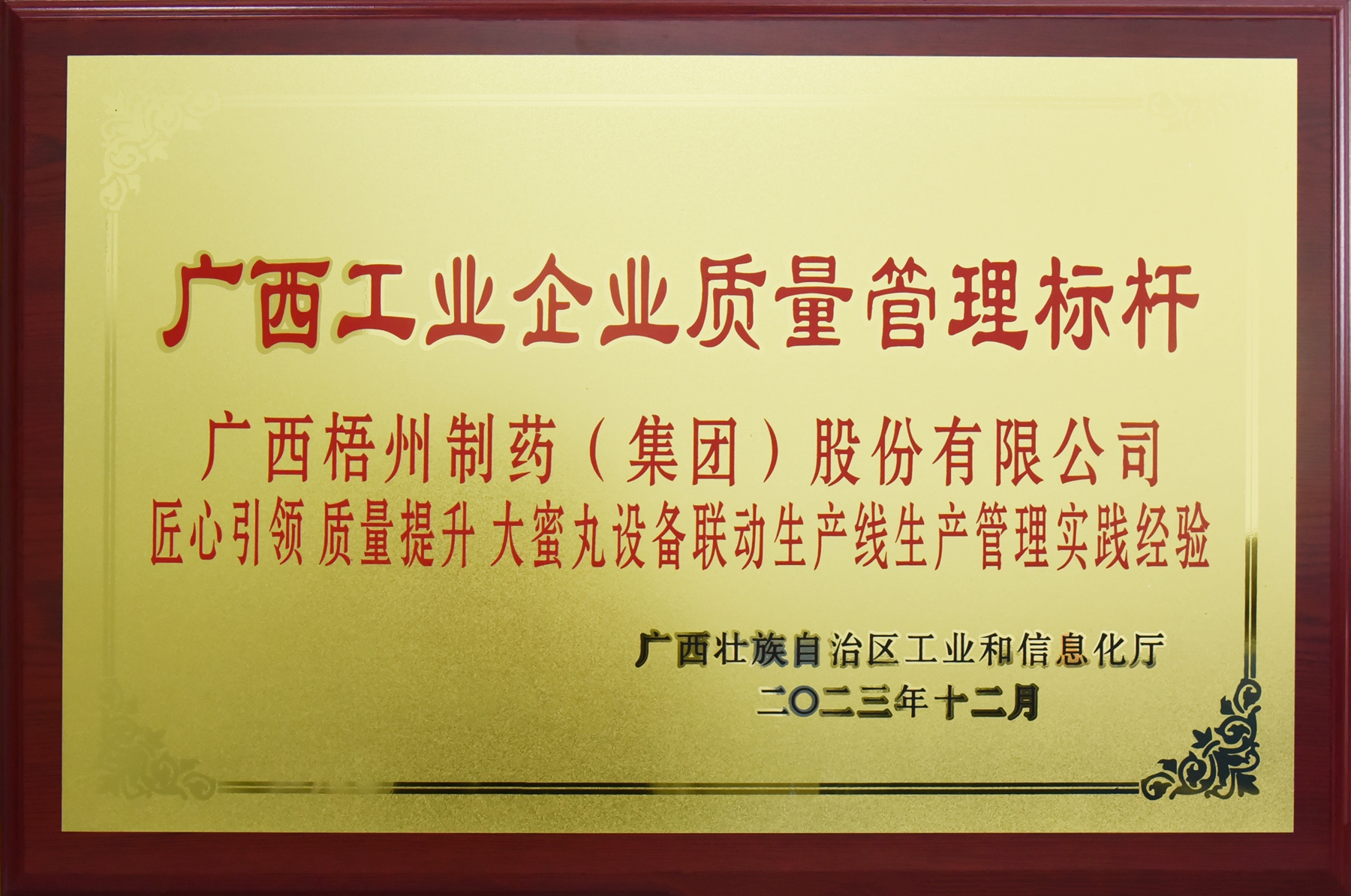 梧州制藥匠心引領(lǐng)質(zhì)量提升大蜜丸設(shè)備聯(lián)動(dòng)榮獲生產(chǎn)線生產(chǎn)管理實(shí)踐經(jīng)驗(yàn)榮獲廣西工業(yè)企業(yè)質(zhì)量管理標(biāo)桿