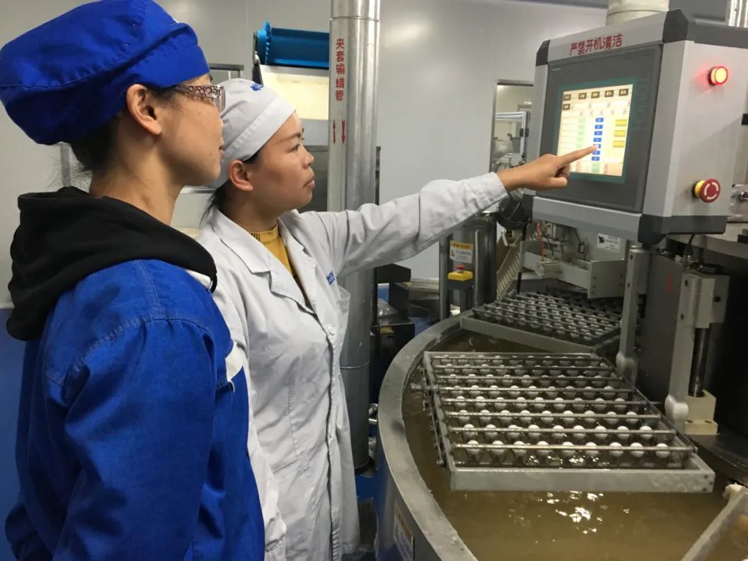 面對(duì)這個(gè)問(wèn)題,雷潔萍和團(tuán)隊(duì)加快技術(shù)改造創(chuàng)新,引進(jìn)兩條大蜜丸全自動(dòng)扣殼、全自動(dòng)蘸蠟設(shè)備聯(lián)動(dòng)生產(chǎn)線。反復(fù)調(diào)試入殼機(jī)扣殼的吻合度與力度,最終實(shí)現(xiàn)機(jī)械設(shè)備間的聯(lián)動(dòng)生產(chǎn),操作人員由100余人壓降到20余人,日產(chǎn)量翻了10倍,大幅提高產(chǎn)能及生產(chǎn)效率,縮短了生產(chǎn)周期。