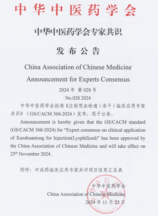現已發(fā)布的《注射用血栓通(凍干)臨床應用專家共識》將納入證據庫,供中醫(yī)臨床診療指南編制時參考。