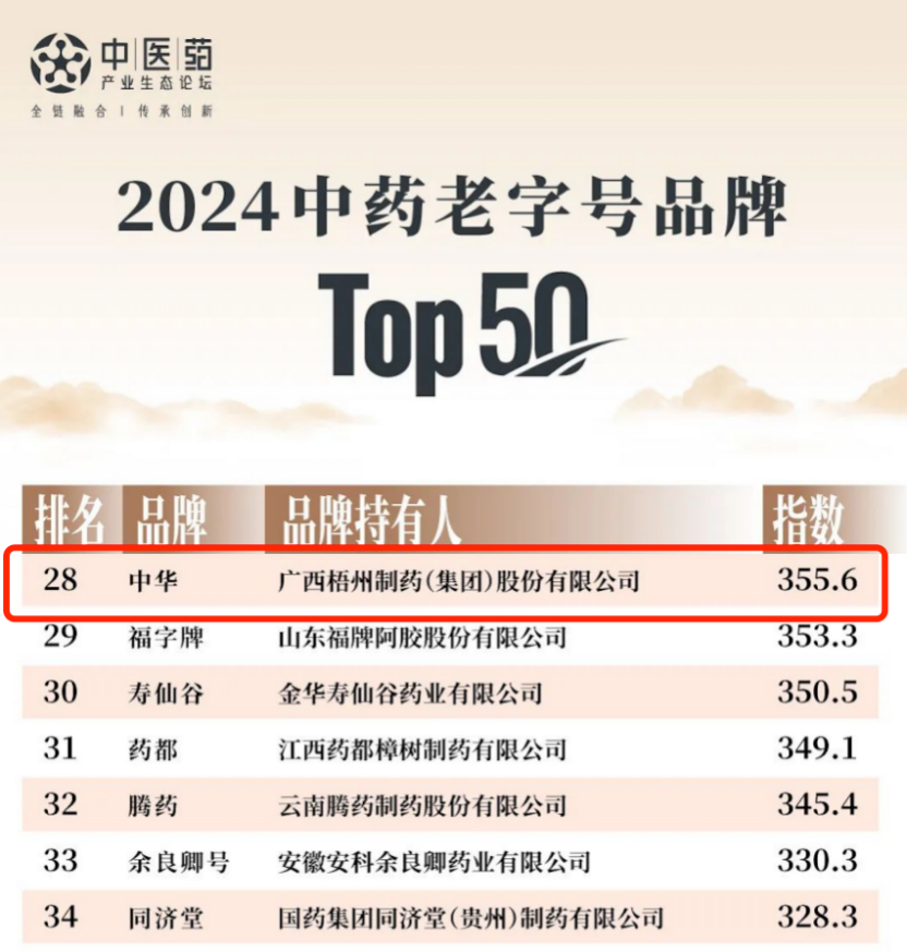 除了起家品種中華跌打丸外,目前梧州制藥還有中華跌打酒、婦炎凈膠囊、結(jié)石通片、炎見寧片、蛇膽川貝液等共計(jì)135個(gè)中成藥產(chǎn)品統(tǒng)一使用“中華牌”商標(biāo)標(biāo)識(shí),覆蓋多個(gè)領(lǐng)域,實(shí)現(xiàn)了品牌價(jià)值的創(chuàng)造性轉(zhuǎn)化和經(jīng)典產(chǎn)品的創(chuàng)新性發(fā)展。
