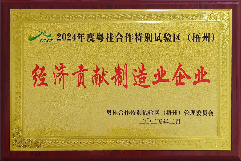 廣西梧州制藥(集團)股份有限公司獲評2024年度粵桂合作特別試驗區(qū)(梧州)經(jīng)濟貢獻制造業(yè)企業(yè)”