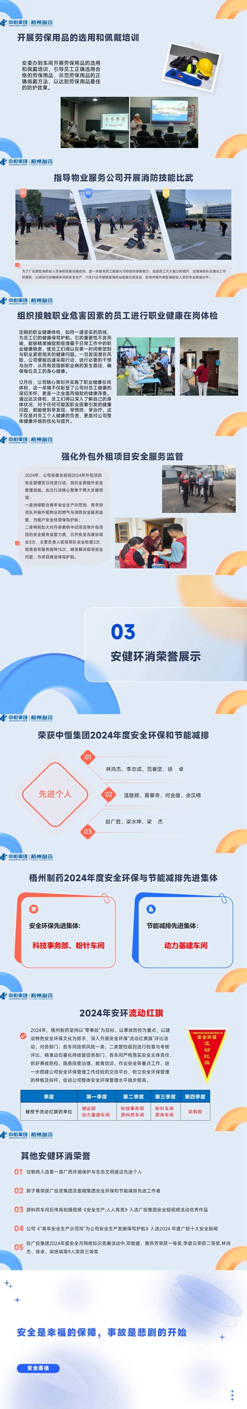下面,讓我們共同回顧梧州制藥2024年度安健環(huán)消情況,了解這一年來梧州制藥在安全環(huán)保工作上的貢獻與作為。
