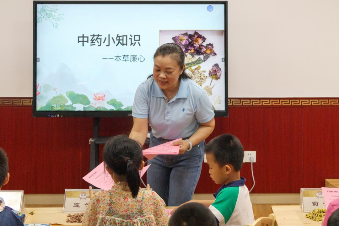 活動(dòng)以朗誦葉劍英家書開篇,家長與孩子深情共讀,勾勒出一幅風(fēng)清氣正的和美畫卷。在“中藥小知識——本草廉心”小課堂里,工作人員展示淡竹葉、蓮子、荷葉等清心類藥材標(biāo)本,孩子們在家長陪伴下觀察形態(tài)、嗅聞氣味、參與趣味問答,感受中醫(yī)藥文化的獨(dú)特魅力,讓古老中醫(yī)藥文化在孩子們心中“鮮活”起來。