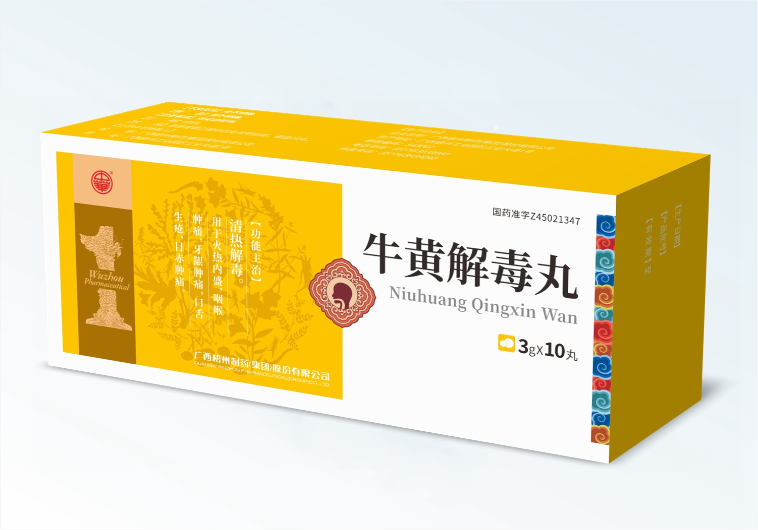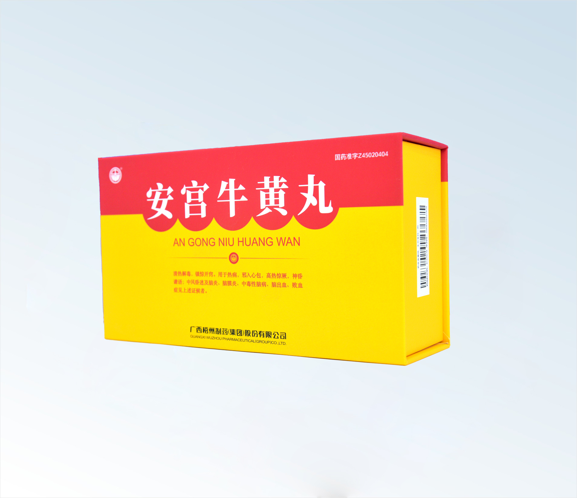 藥品成分體外培育牛黃、水牛角濃縮粉、人工麝香、珍珠、朱砂、雄黃、黃連、黃芩、梔子、郁金、冰片。功能主治清熱解毒,鎮(zhèn)驚開(kāi)竅。用于熱病,邪入心包,高熱驚厥,神昏譫語(yǔ);中風(fēng)昏迷及腦炎、腦膜炎、中毒性腦病、腦