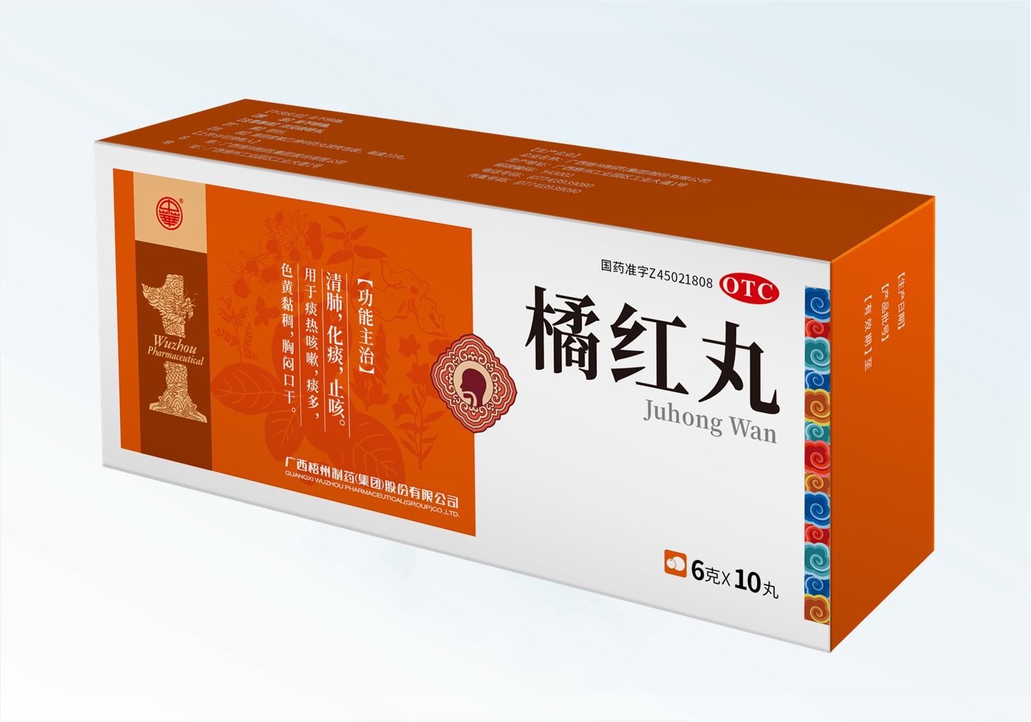 【藥品名稱(chēng)】通用名稱(chēng):橘紅丸漢語(yǔ)拼音:JuhongWan【成份】化橘紅、陳皮、半夏(制)、茯苓、甘草、桔梗、苦杏仁、炒紫蘇子、紫菀、款冬花、瓜蔞皮、浙貝母、地黃、麥冬、石膏。輔料為蜂蜜。【性